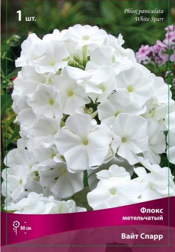 Вайт Спарр - высота растения 80 см. Соцветие большое, плотное. Цветок белоснежный. Диаметр цветка - 3,5 см.