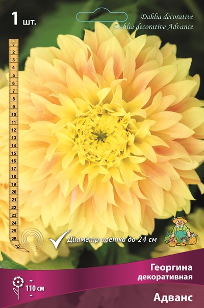 Адванс - высота растения 110 см. Цветок очень крупный, диаметром до 24 см. Лепестки желтые с нежным розовым румянцем.