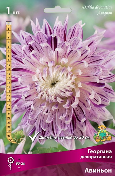 Авиньон - высота растения 90 см. Цветок диаметром 15 см, белый с сиреневыми штрихами.