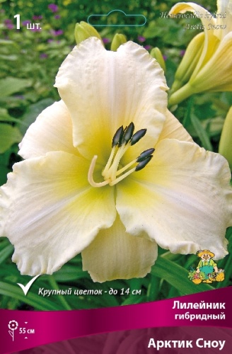 Арктик Сноу - высота растения 55 см, цветки кремово-белые с желтым горлом, диаметром до 14 см. Цветение июль-август.