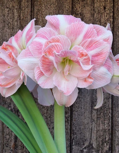 Амариллис махровый Блоссом Нимф - идеальный выбор для тех, кто мечтает добавить немного романтики и изящества в своё окружающее пространство. Растение высотой 50-70 см. Крепкие прямые стебли поддерживают объёмные цветы, сохраняя эстетику композиции. На одном цветоносе может быть от 2-х до 4-х цветков. Цветы махровые, многослойные с шелковистыми волнистыми лепестками, напоминают нежные пионы, привлекая взгляд мягким градиентом нежных розовых и кремово-белых оттенков. Диаметр цветка варьируется от 18 до 22 см. Амариллис Блоссом Нимф обладает удивительной способностью притягивать взгляды своей величественной красотой и масштабностью цветов, создавая ощущение лёгкости и воздушности. Такой красивый и эффектный сорт позволит вам украсить дом и наполнить его особой атмосферой тепла и гармонии.