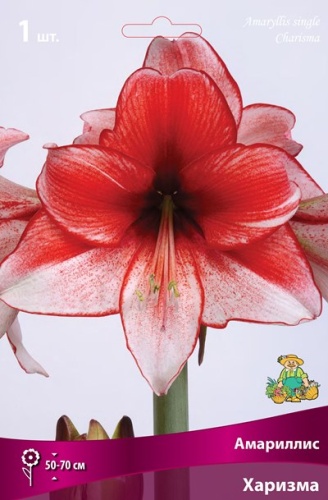 Харизма - высота растения 50-70 см. Цветок белый с густым кораллово-красным крапом.
