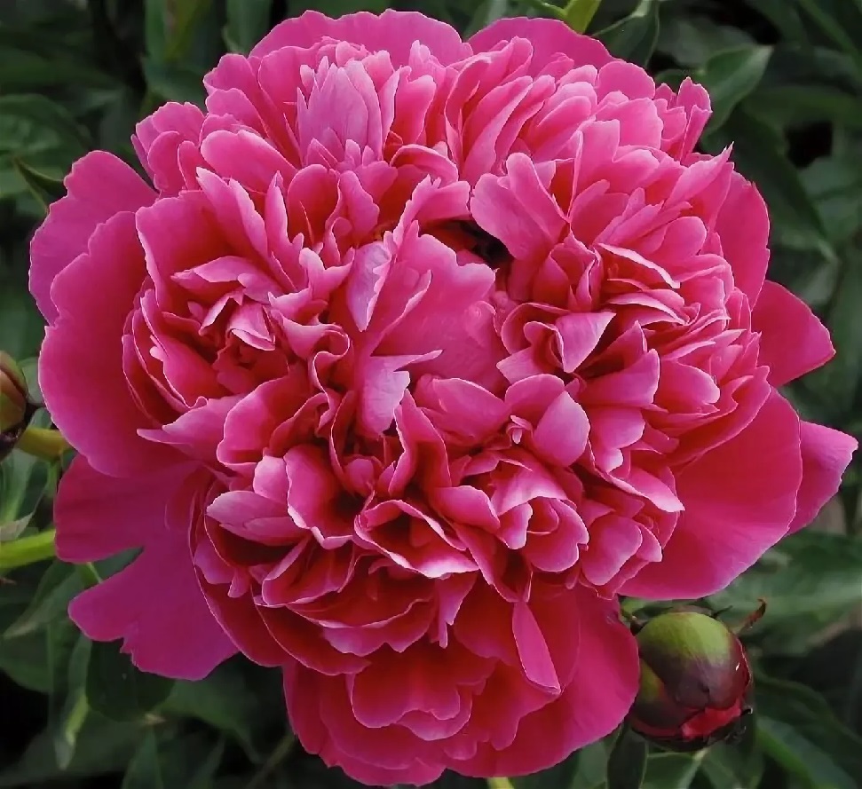 Канзас - высота растения 70-100 см. Срок цветения среднеранний. Цветок махровый, розовидный, 17-20 см в диаметре. Лепестки красные, плотно сложены. В зависимости от погодных условий форма и окраска цветка могут меняться. Цветение обильное. Бутон хорошо раскрывается. Золотая медаль Американского общества цветоводов 1957 г. Чемпион национальной выставки пионов США 1950 г.