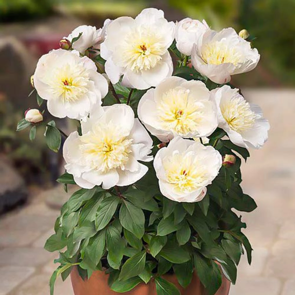 Пионы – травянистые многолетники с мощными мясистыми корнеклубнями. Низкорослые сорта (высотой 35-40 см) благодаря компактности куста, крепким цветоносам и дружному ароматному цветению представляют наибольший интерес для выращивания в горшках. Цветки одиночные, простые, полумахровые, махровые; белые, розовые, красные, реже желтые. Листья крупные рассеченные.