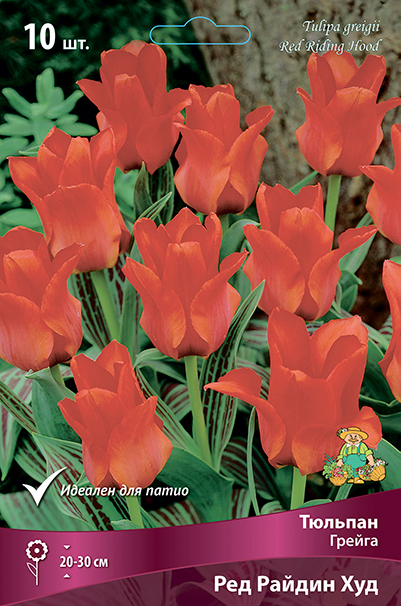 Ред Райдин Худ - высота растения 20-30 см, цветок ярко-красный, листья с выразительными фиолетовыми полосами. Один из самых ценных сортов в данном классе.